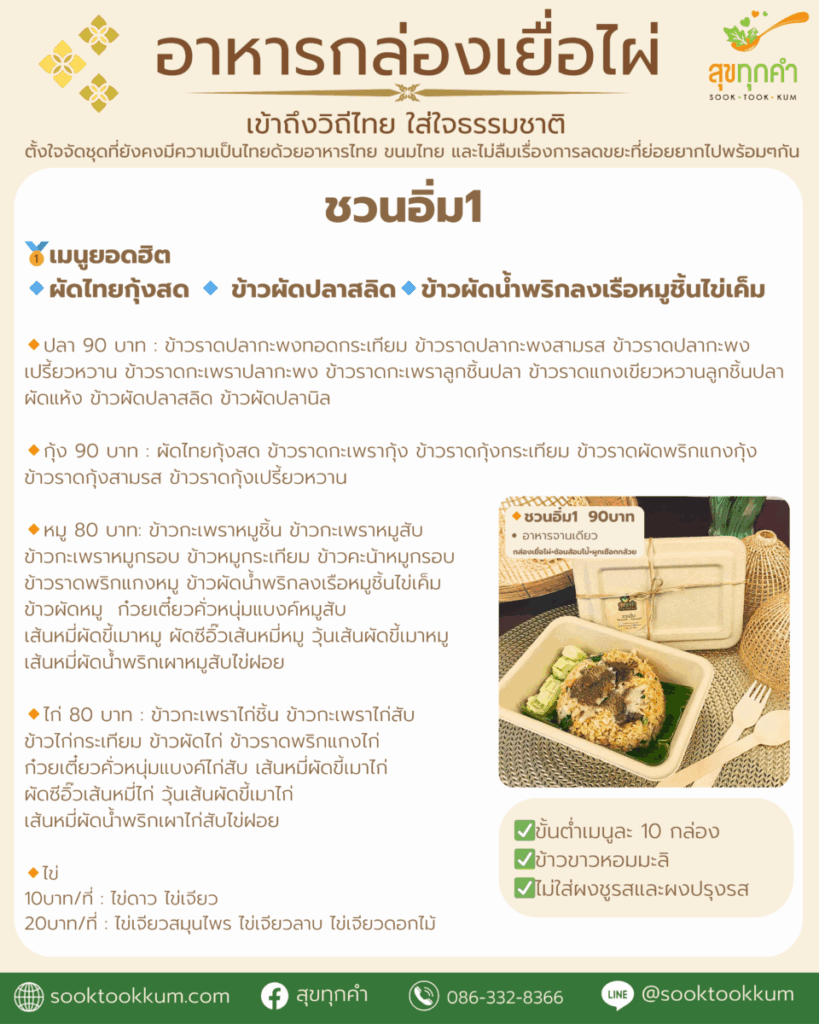 🍽 เลือกรายการอาหาร, ขนมไทย, น้ำสมุนไพร กดที่ลิ้งก์นี้ ➡️ อาหาร ขนม น้ำสมุนไพร