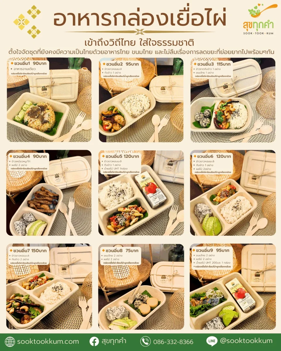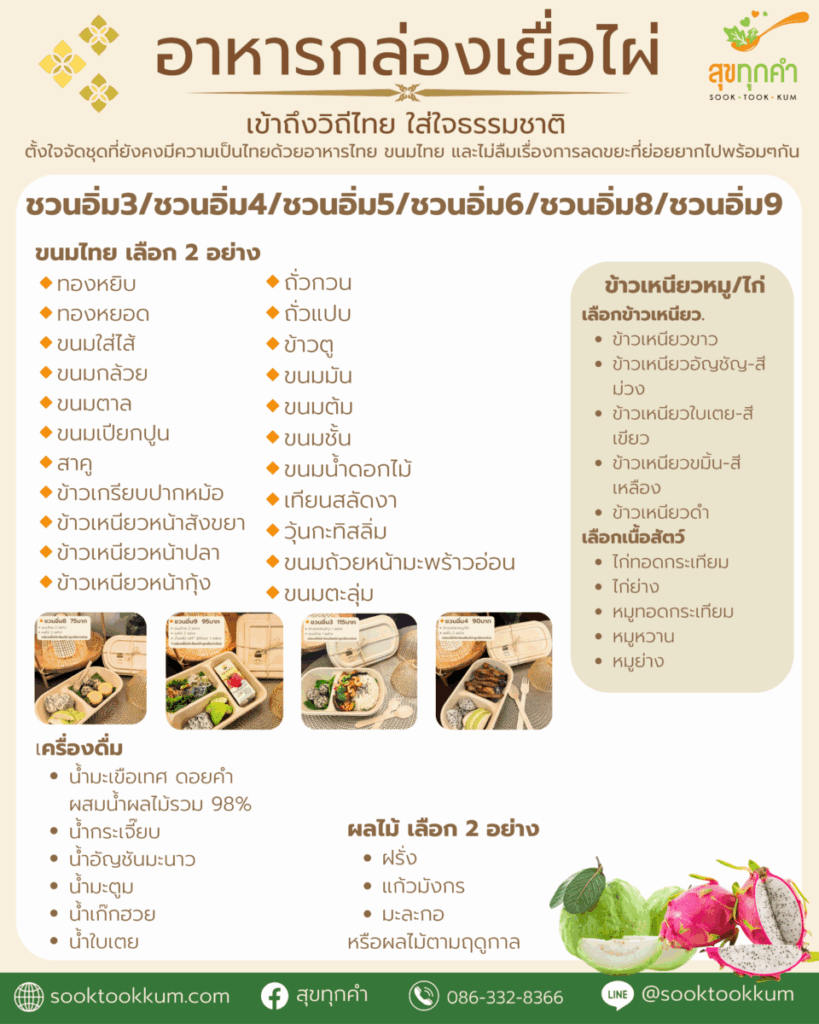 💰 ราคาเริ่มต้น สำรับละ 339-739 บาท มีให้เลือกกว่า 5 ชุด บรรจุภาชนะ ปิ่นโต มีทั้ง