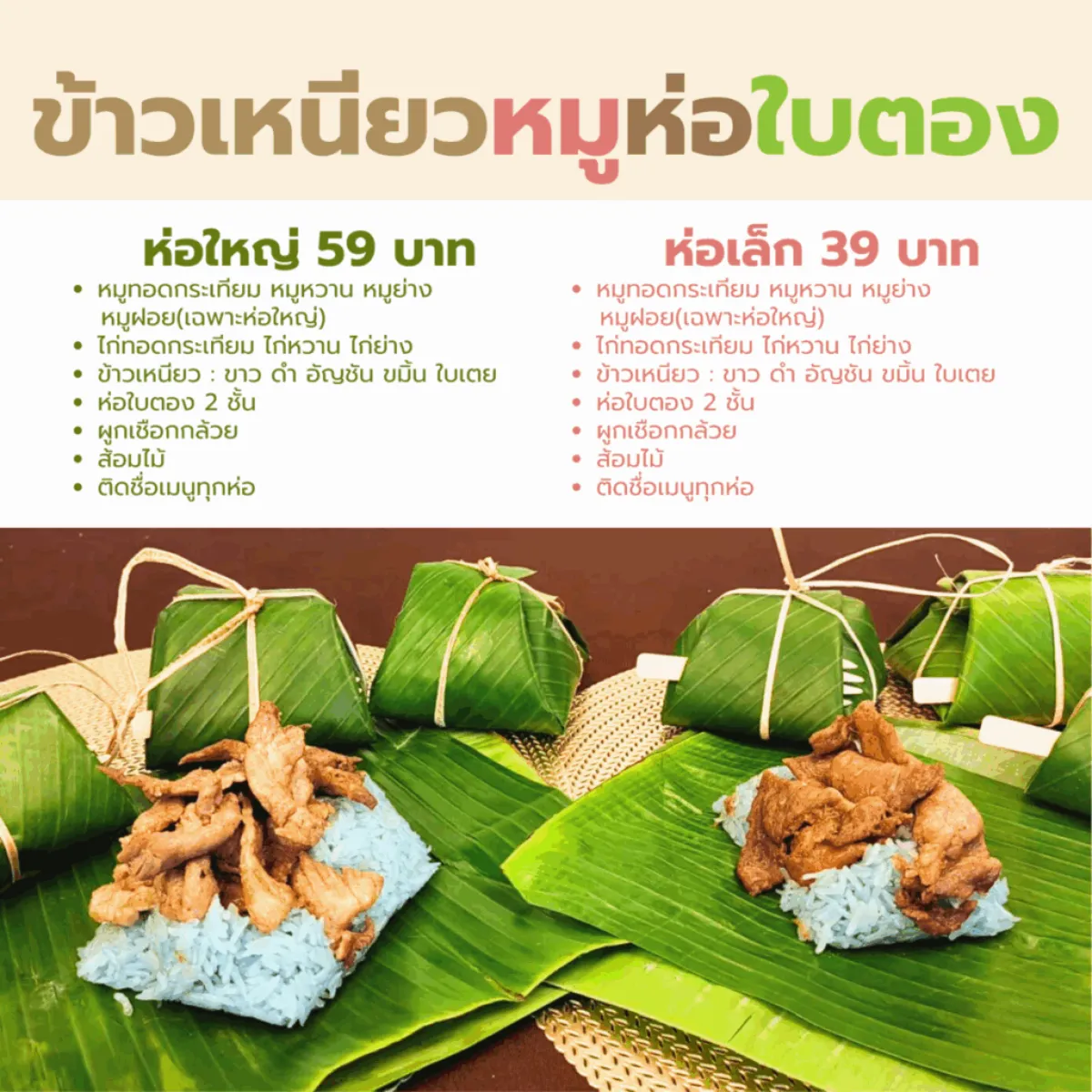 รายการข้าวเหนียวหมูห่อใบตอง เลือกได้ตามใจ